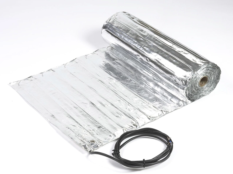 De verwarmingskabel is gelijkmatig bevestigd op een glasvezelnet (met een lus- afstand van ca. 10 cm) en verwerkt in een warmtegeleidende aluminium folie met aardingsscherm. De isolatie van deze kabel is gemaakt van TEFLON en de beschermmantel is van PVC.