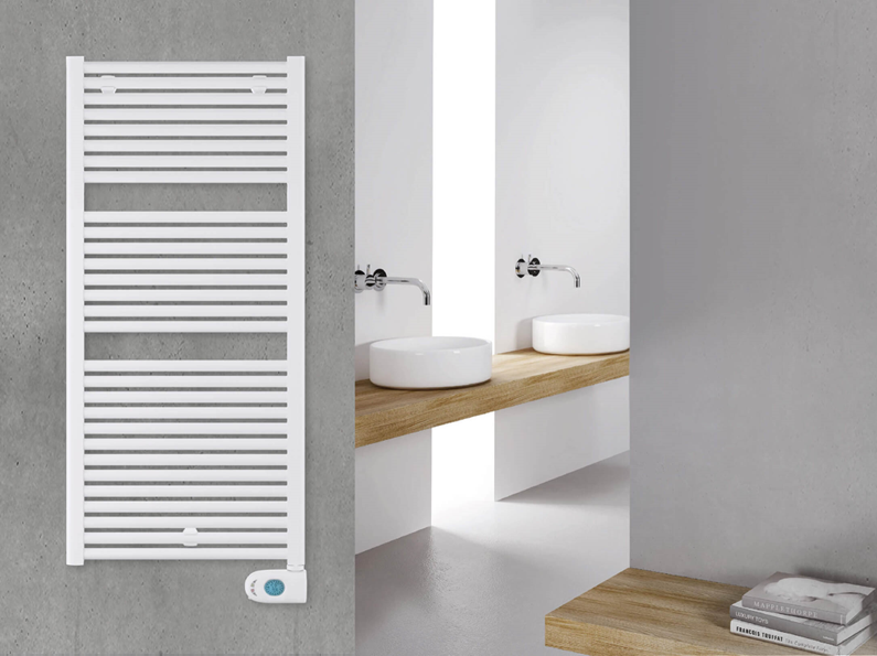 1 x E-Comfort CLAUDIA, witte badkamerradiator met EcoDesign thermostaat