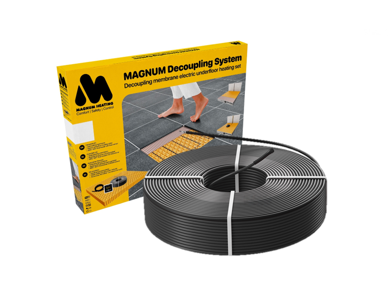 De MAGNUM Decoupling Mat is beschikbaar als pakket met losse platen voor 3 m², op rol van 5 m² of in de vorm van complete sets met 4,5mm kabel en sensorbuis voor verwarmde netto-oppervlaktes van 1 m² t/m 5 m².
