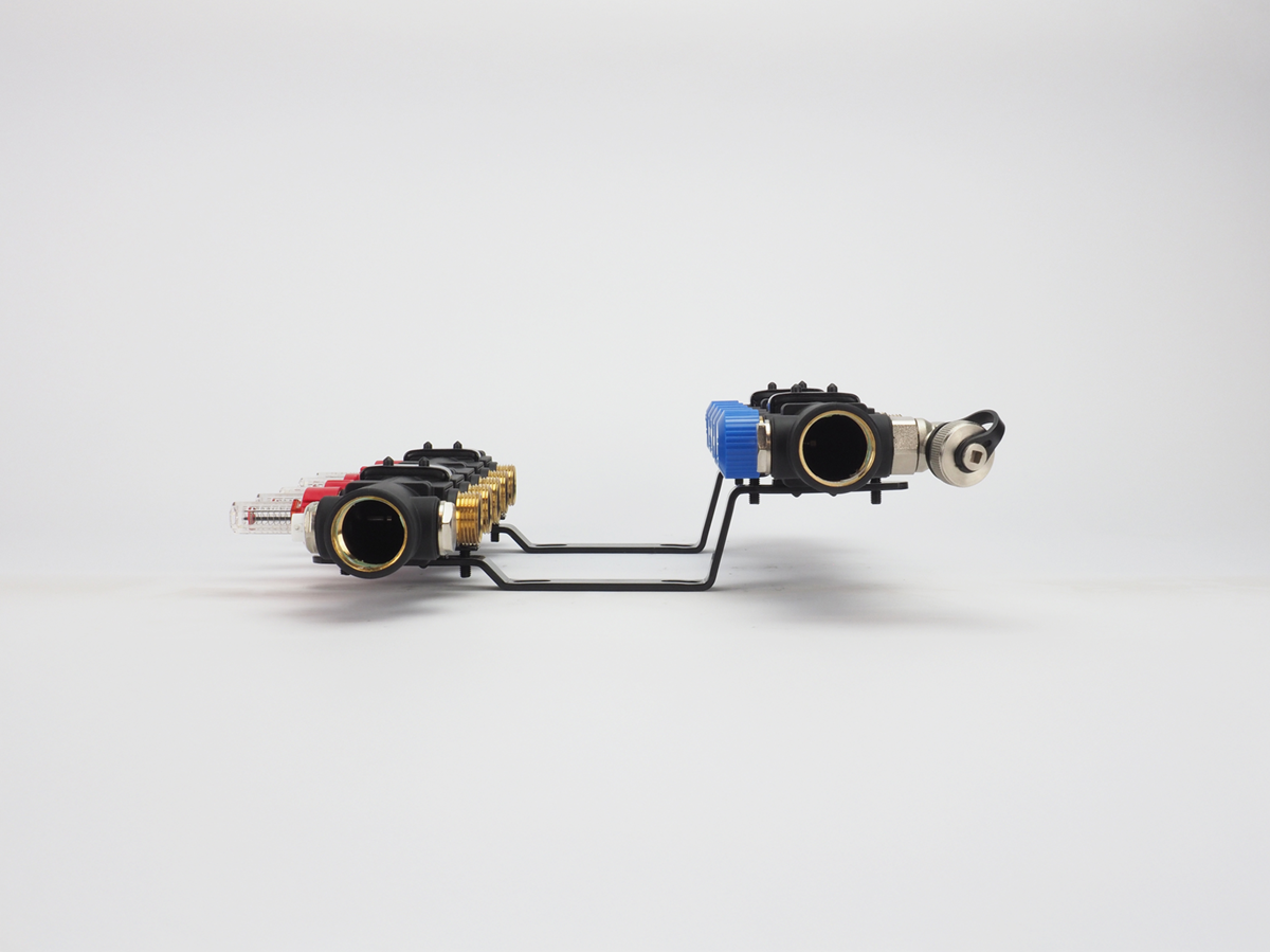 Deze uitvoering van de MAGNUM EcoFlow open kunststof verdeler bestaat uit een kunststof module uit één geheel. Deze module is vervaardigd van een met glasvezel versterkte polyamide, waardoor hij bestand is tegen zowel hoge als lage temperaturen. Dit maakt deze verdeelunit uitermate geschikt voor zowel verwarmen als koelen, bijvoorbeeld in combinatie met een hybride warmtepomp die in de winter warmte levert en in de zomer koelt. Standaard is deze basis uitvoering voorzien van een handmatige ontluchter en inregelbare flowmeters.