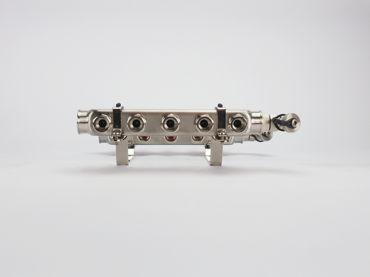 Deze basisuitvoering van de open RVS collector bestaat uit roestvast stalen modules uit één geheel, die door middel van ophangbeugels aan de wand gemonteerd worden. De verdeler is geschikt voor laagtemperatuursystemen en voorzien van inregelbare flowmeters waarmee de doorstroom van water per groep ingeregeld kan worden.