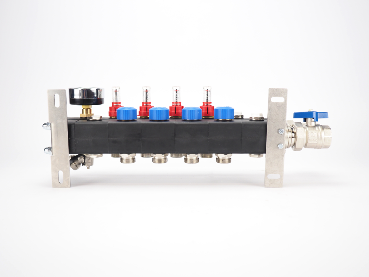 Sterke kunststof vloerverwarming verdeler van losse componenten met flow-meters inbegrepen;