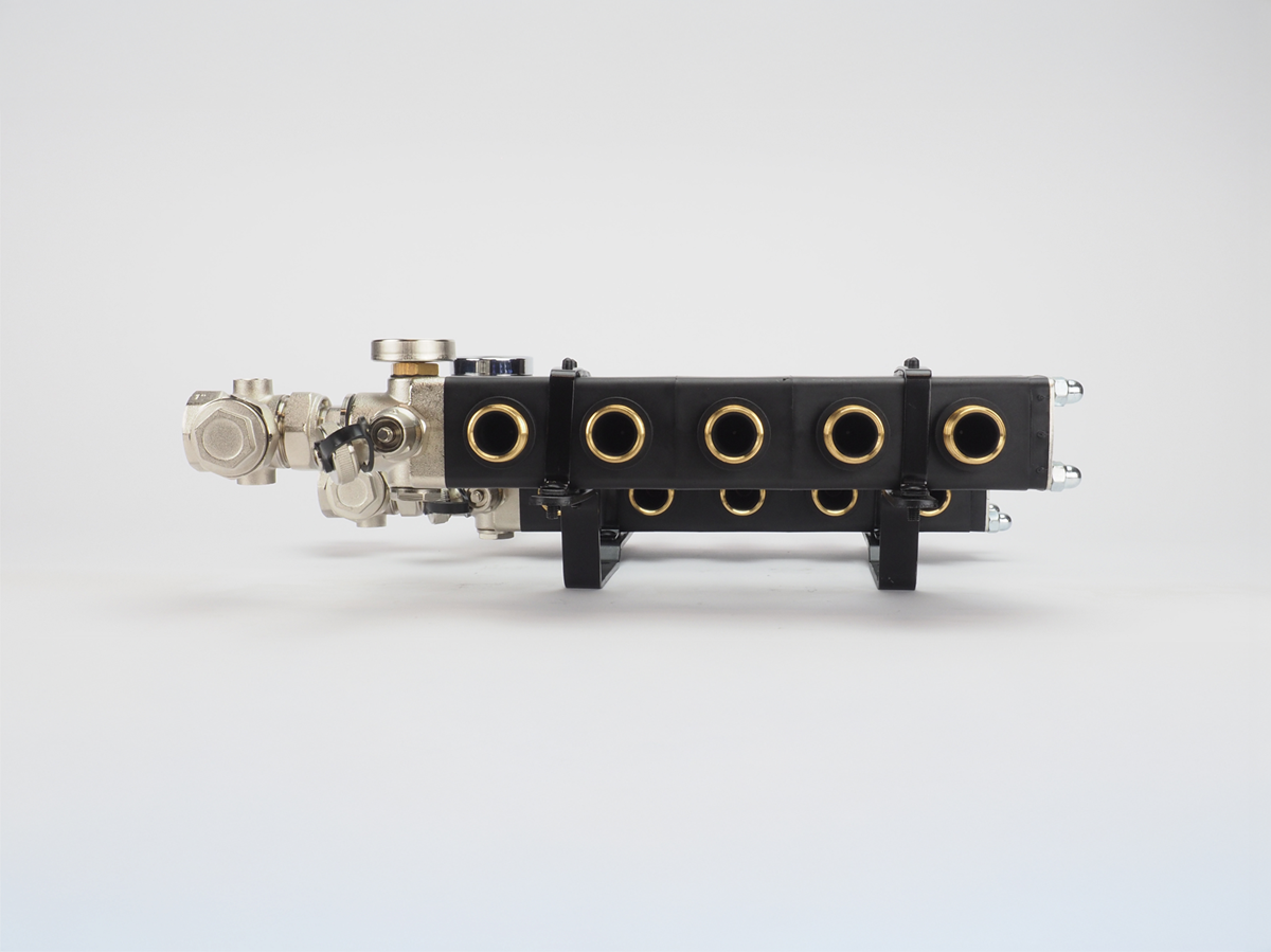 De losse elementen zijn vervaardigd van een met glasvezel versterkte polyamide, die zeer geschikt is voor hoge, maar ook lage temperaturen. De elementen hebben een dubbelwandige opbouw waardoor automatisch een isolatielaag wordt gevormd. Dit maakt deze verdeler uitermate geschikt voor verwarmen, maar ook voor koelen. Door deze isolatielaag ontstaat nagenoeg geen condensvorming op de collector. Deze verdeelunit wordt daarom veel toegepast in combinatie met een warmtepomp, die in de winter verwarmd en in de zomer koelt. Standaard is deze collector voorzien van 1” kogelkranen, 2 automatische ontluchters en inregelbare flowmeters.