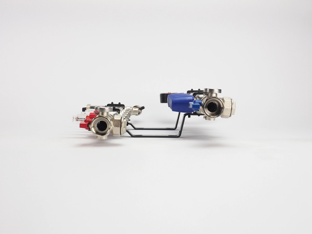 aanvoer met kogelafsluiter, 1" thermometer aanvoer inregelbare flowmeter aanvoer vloerverwarmingsbuizen automatische ontluchter vul-/aftapkraan retour met kogelafsluiter, 1" thermometer retour thermostatische afsluiter met M30 draad retour vloerverwarmingsbuizen vul-/aftapkraan manometer |