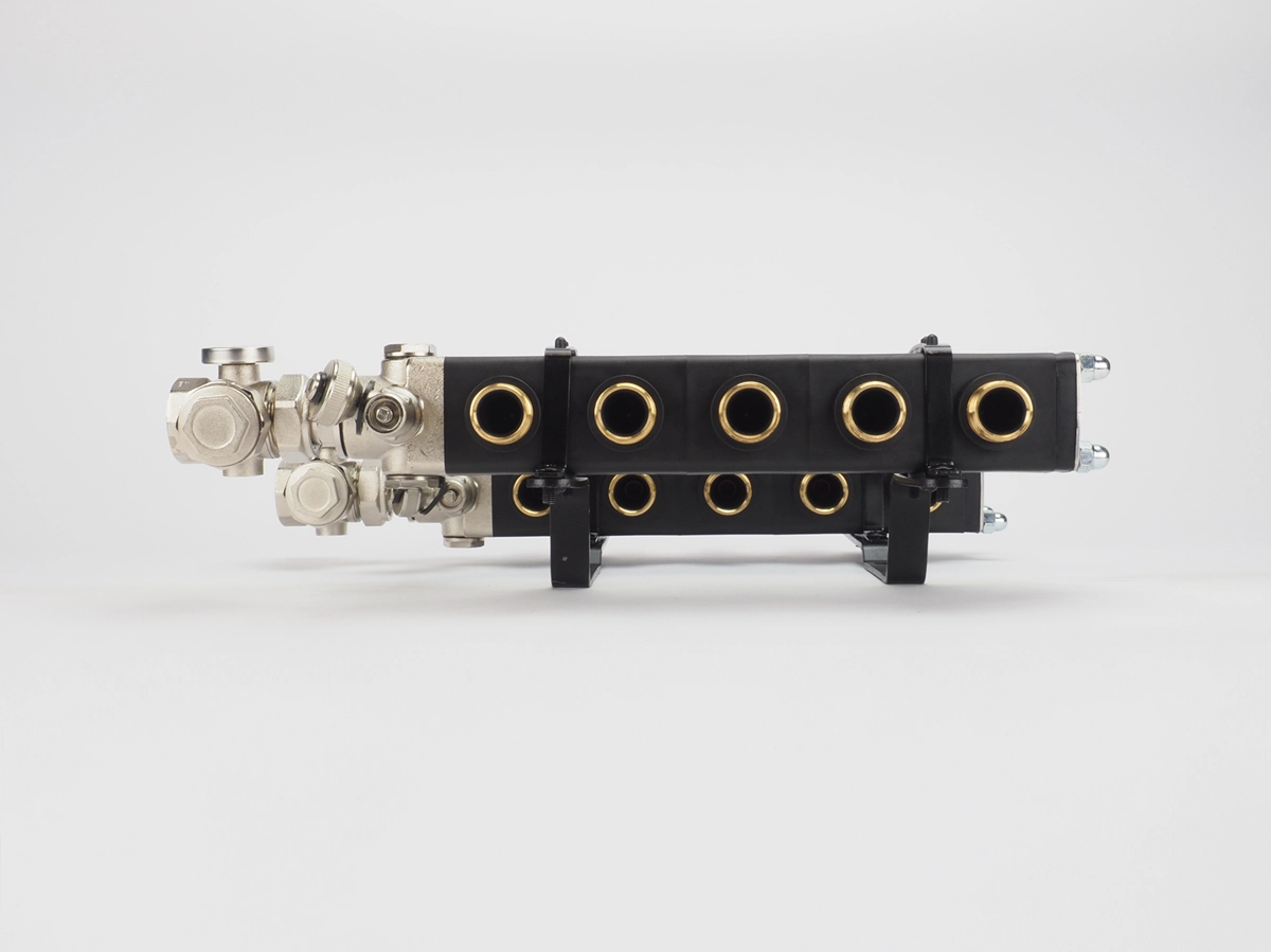 De losse elementen zijn vervaardigd van een met glasvezel versterkte polyamide, die zeer geschikt is voor hoge, maar ook lage temperaturen. De elementen hebben een dubbelwandige opbouw waardoor automatisch een isolatielaag wordt gevormd. Dit maakt deze verdeler uitermate geschikt voor verwarmen, maar ook voor koelen. Door deze isolatielaag ontstaat nagenoeg geen condensvorming op de collector. Deze verdeelunit wordt daarom veel toegepast in combinatie met een warmtepomp, die in de winter verwarmd en in de zomer koelt. Standaard is deze verdeler voorzien van 1” kogelkranen, een handmatige ontluchter en inregelbare flowmeters.