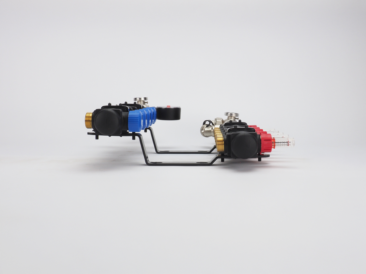 Sterke kunststof vloerverwarming verdeelunit van losse componenten met flow-meters inbegrepen;