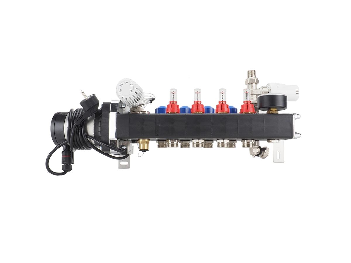 De verdeler is standaard uitgerust met een energiezuinige Grundfos ALPHA1 pomp.