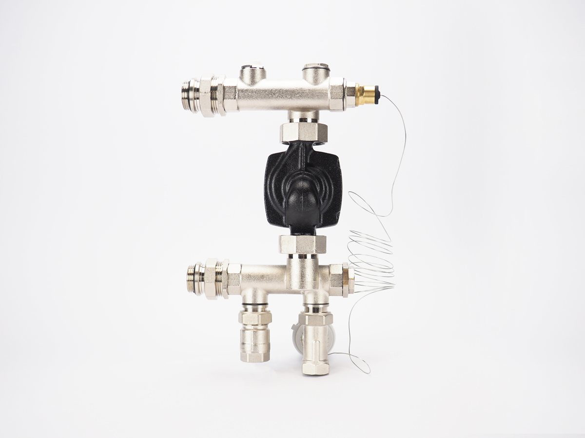 Verder is de temperatuur mengunit voorzien van een regelventiel waarmee de hoeveelheid mengwater vanuit de vloer begrensd kan worden. Hierdoor wordt de collector steeds actiever, waardoor meer warm water vanuit de primaire aanvoer naar binnen wordt genomen. Hierdoor is deze regelunit uitermate geschikt voor laagtemperatuur-trajecten, waarbij nog wel moet worden teruggemengd om de correcte vloertemperatuur te bereiken. Mocht u in de toekomst overstappen op een (hybride) warmtepomp, dan kan de regelunit worden aangepast met een hybride-uitbreidingsset of u verwijdert de unit, zodat er een open RVS collector overblijft.