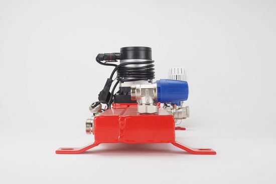De stalen mengverdeler bestaat uit een voorgemonteerde stalen constructie met circulatiepomp, thermometer en dubbel instelbare groepsafsluiters.
