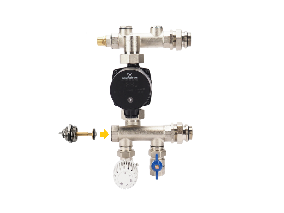 kunnen optreden in de primaire aanvoertemperaturen, is het raadzaam om gebruik te maken van deze uitbreidingsset voor de temperatuurregelaar met pomp.