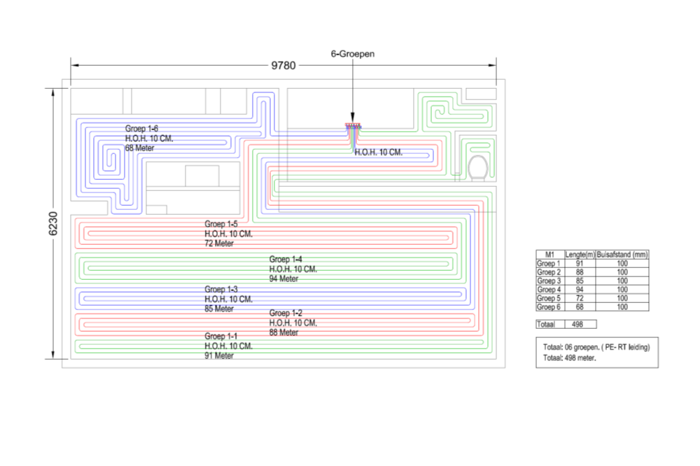 Een legplan is gratis bij bestelling van een collector en één of meer vloerverwarmingsbuizen. Klik hier om een legplan aan te vragen.