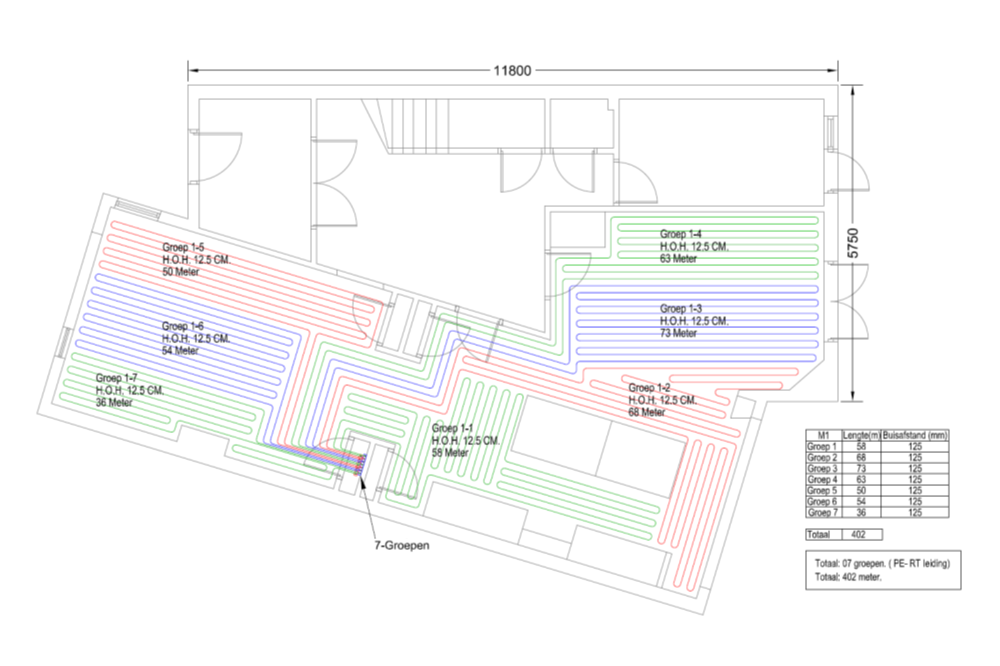 Als u zelf een watergedragen vloerverwarmingssysteem gaat installeren, dan wilt u de buizen van het systeem natuurlijk zo gunstig mogelijk aanleggen. Wanneer u een plattegrond van de ruimte(s) beschikbaar heeft, dan kunnen wij voor u een legplan uitwerken. In dit plan ziet u dan onder andere het legpatroon, de buislengtes en het aantal vloerverwarmingsgroepen terug.
